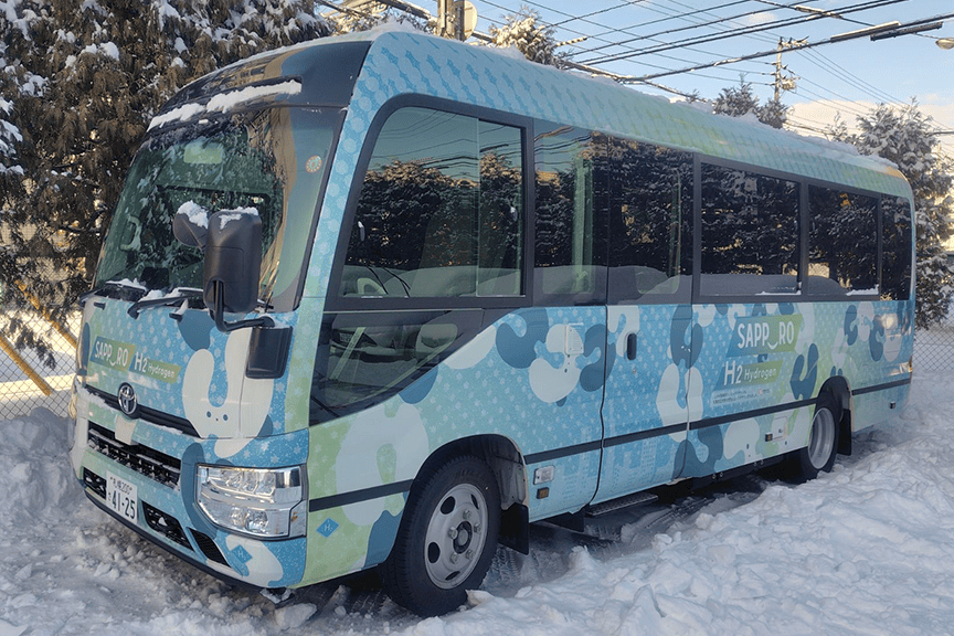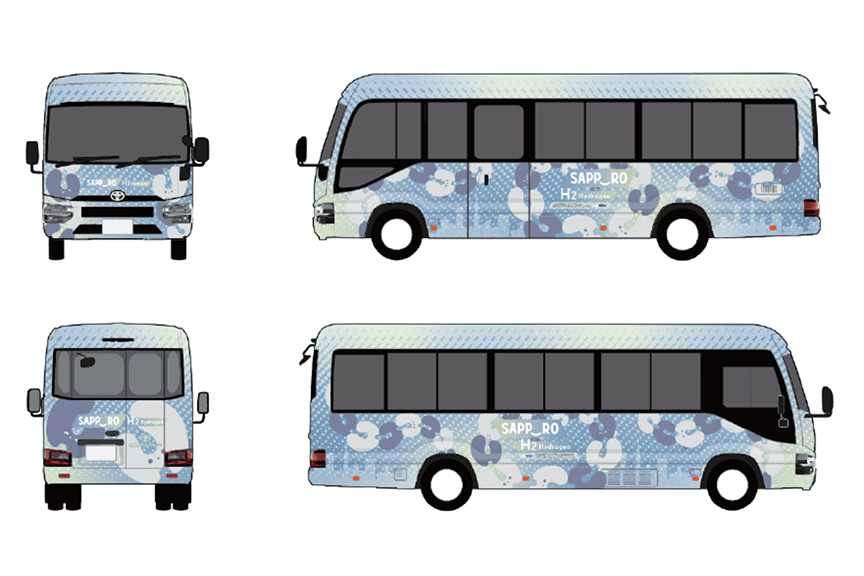 シャトルバスの運行では、札幌市の水素利活用の取組の一環として、水素で動くマイクロバスも運行いたします。